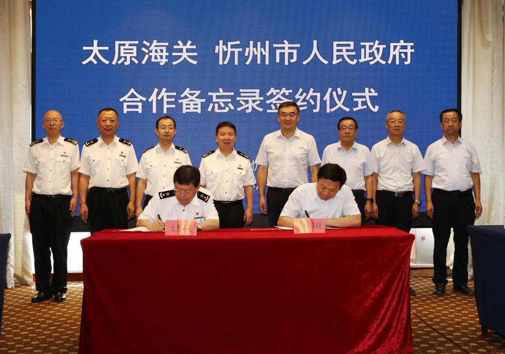 8月6日,忻州市人民政府與太原海關合作備忘錄簽約儀式在忻舉行。市委副書記、市長李建國,太原海關黨委書記、關長江林分別致辭;市政府黨組成員孟宏斌、太原海關副關長廉慧鋒代表雙方簽約;市政府秘書長張艮生主持簽約儀式。太原海關、忻州海關,忻州市商務、財政、公安、市場監管部門和五臺山機場負責人等見證簽約。