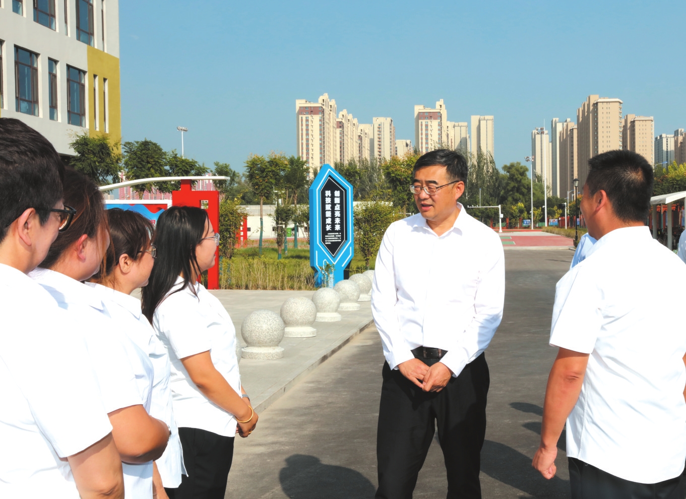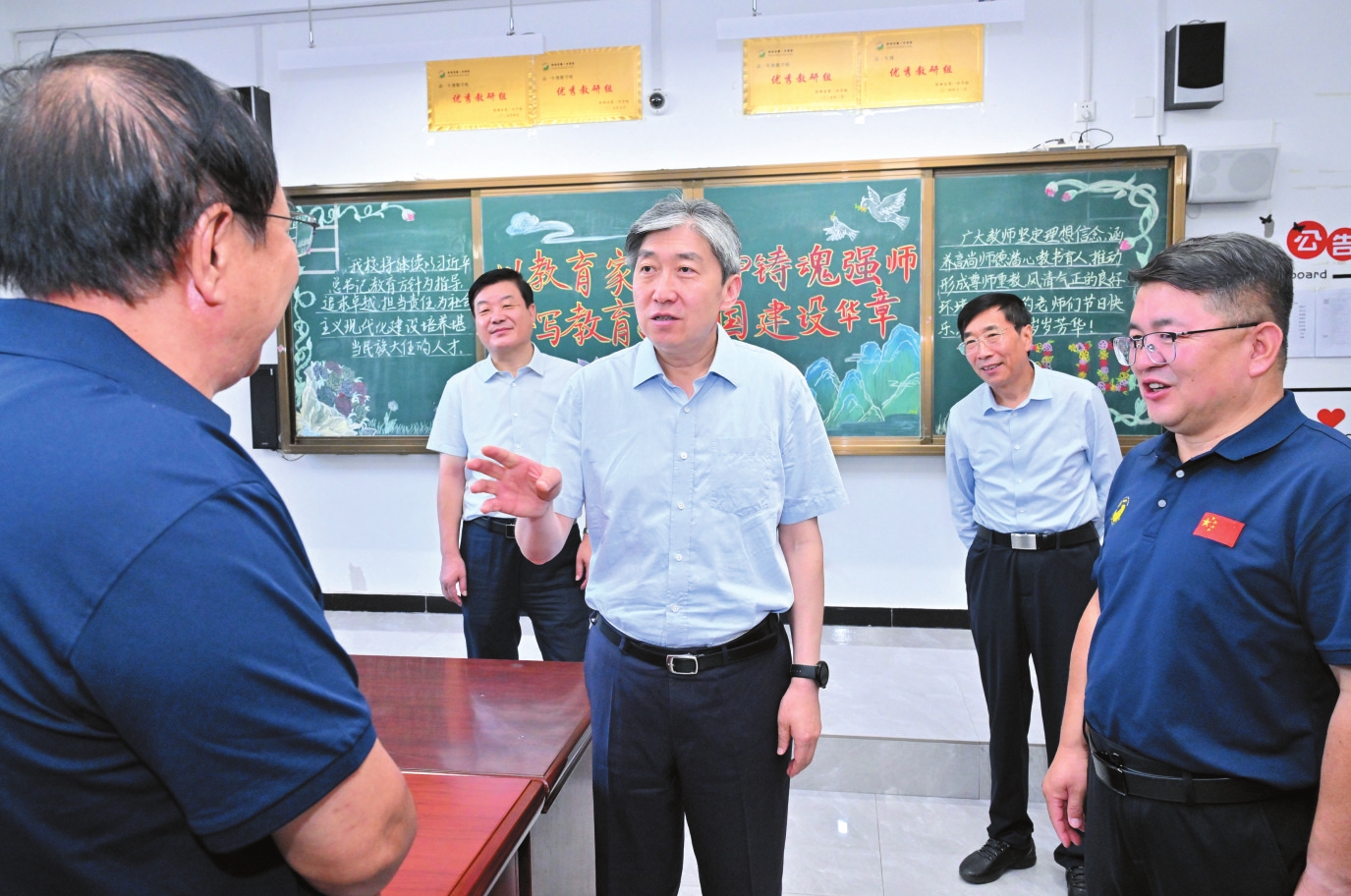 市委副書記、市長李建國在忻州市第五中學慰問一線教師。本報記者范濤攝