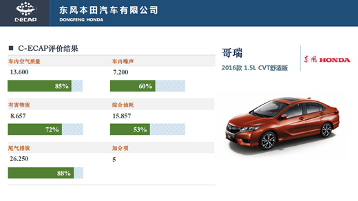 在本批次C-ECAP評價中,一汽-大眾高爾夫車型獲得截止至目前C-ECAP評價車型中的最高獎牌白金牌;廣汽傳祺是在C-ECAP中首次出現的中國品牌,與觀致車型一并獲得金牌;東風本田哥瑞因在車內噪音方面的相對得分較低,獲得銀牌。