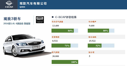 人民網天津3月9日電(鄂智超)日前,中國生態汽車評價(C-ECAP)新一批測試結果公布。本次共公布了四款車型,分別為一汽-大眾高爾夫 2016款 1.2TSI自動舒適版(90.40分)、廣汽傳祺GS4 2015款 200T G-DCT舒適版(80.68分)、觀致3轎車 2016款1.6L 6速自動致能型(82.05分)、東風本田哥瑞 2016款1.5L CVT舒適版(76.57分)。其中一汽-大眾高爾夫車型獲得白金牌,廣汽傳祺GS4與觀致3轎車獲得金牌,東風本田哥瑞獲銀牌。