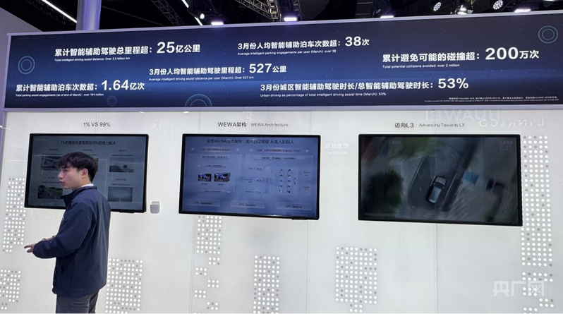 華為乾崑展臺上的宣傳術語。(央廣網記者董楠 攝)