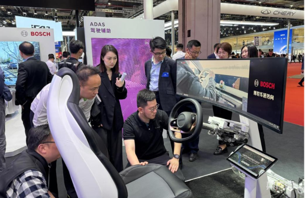 上海車展上博世展臺的駕駛輔助系統展示(央廣網記者董楠 攝)