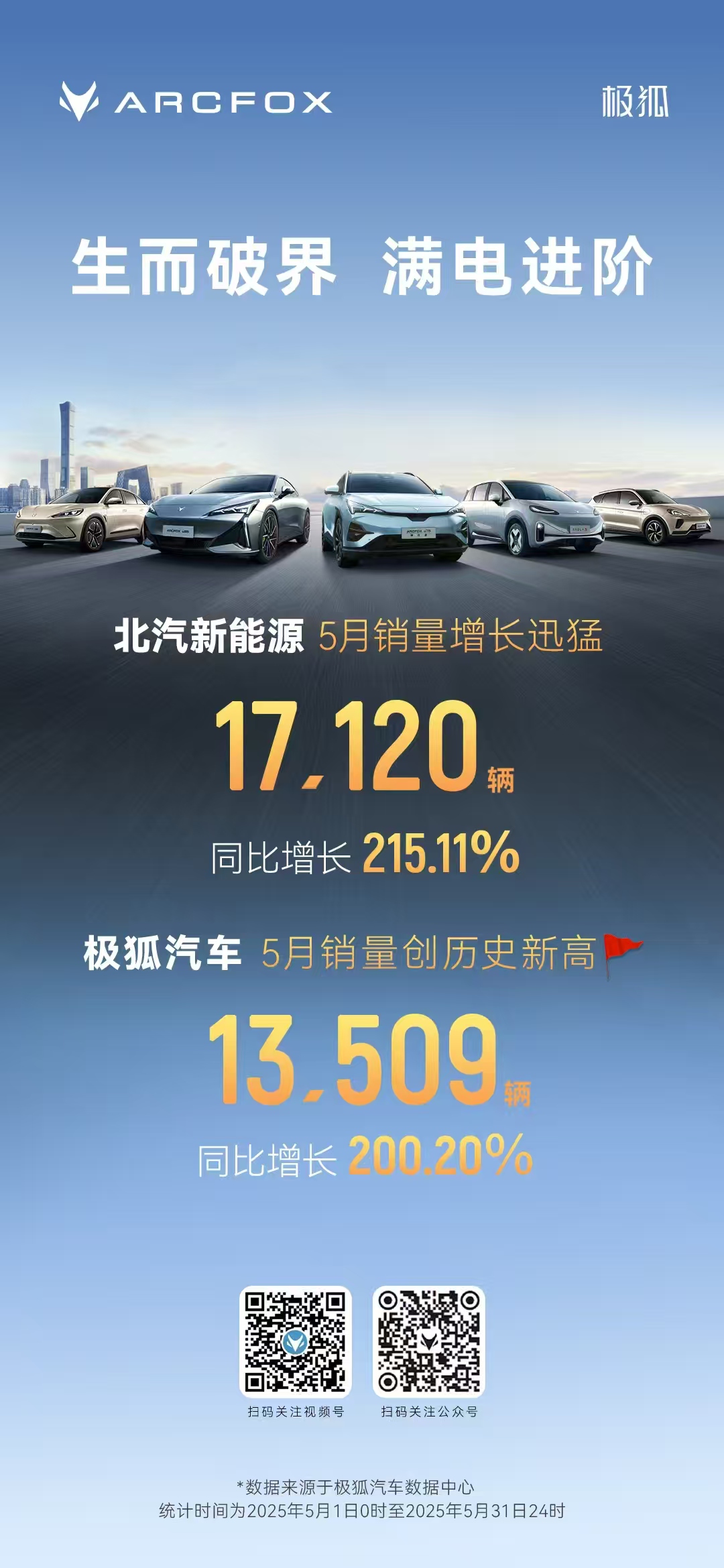 近日,北汽極狐5月的亮眼成績單,證明了品牌的強大“戰力”:13509輛,同比增長200.2%,“極”速增長跑贏大盤。作為“主力隊員”,極狐也憑借出色的市場表現助推北汽新能源在5月創下17120輛的佳績。