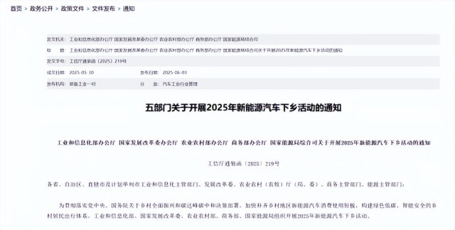【環球網財經綜合報道】6月3日,工業和信息化部等五部門聯合發布通知,開展2025年新能源汽車下鄉活動,以補齊鄉村新能源汽車消費短板,構建綠色出行體系。