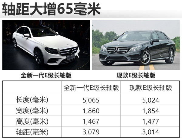 尺寸方面,奔馳全新一代E級的標(biāo)準(zhǔn)軸距版在長度和軸距方面較之現(xiàn)款大幅增加,專為中國研發(fā)的長軸版本尺寸比現(xiàn)款有所增加,新車長寬高分別為5,065*1,860*1,467毫米,軸距為3,079毫米,與現(xiàn)款E級相比車身長度增加41毫米,寬度增加6毫米,軸距長度更是增加65毫米。(圖/文 網(wǎng)通社 郭王虎) (責(zé)任編輯:梁艷) | |||||||||||||||||