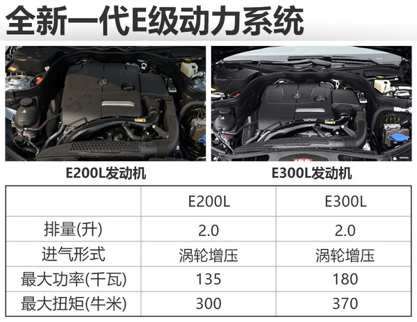 動力方面,新車將搭載兩款不同調(diào)校的2.0T渦輪增壓發(fā)動機(jī),其中E200L是沿用現(xiàn)款車型上的2.0T發(fā)動機(jī),最大功率135千瓦,最大扭計300牛米;E300L發(fā)動機(jī)則擁有更強(qiáng)的動力,最大功率180千瓦,最大扭矩達(dá)到370牛米。 新車配備奔馳9G-Tronic九速自動變速箱,除后驅(qū)車型之外,還提供4Matic四驅(qū)版本供用戶選擇。根據(jù)規(guī)劃,之后全新E級預(yù)計還將推出搭載1.6T渦輪增壓發(fā)動機(jī)的E180版本,作為入門車型。