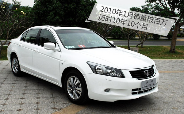 可以對比一下凱美瑞的競爭對手們,其中最早來到中國市場的,應該是1999年3月上市的廣汽本田第6代雅閣。直到凱美瑞出現之前,7代雅閣曾連續19個月占據B級車銷量冠軍的王座。2010年1月第8代雅閣完成了100萬臺的銷量,這也是國內最早突破100萬臺銷量的中級車,歷時10年10個月。