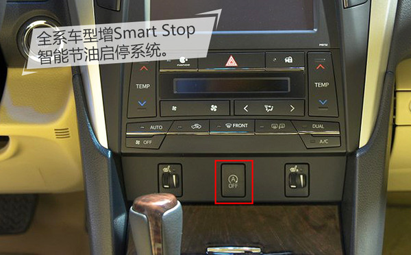 可以說新車最大的一個升級亮點,就是增加了豐田的Smart Stop智能節油啟停系統。省油原本就是凱美瑞的一大特質,好比筆者的7代2.5L車型目前在平均油耗僅為9個油(北京上下班使用)。增加S&S系統之后,凱美瑞的油耗將進一步下降。