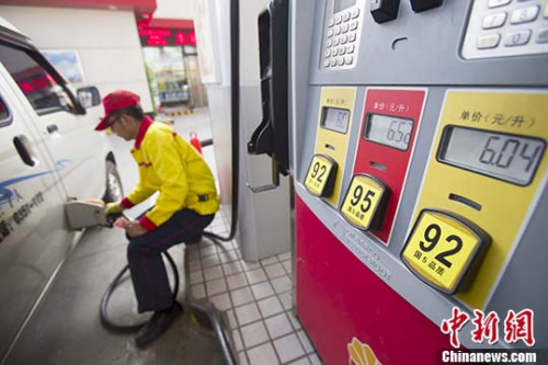 2016年11月2日,山西太原,加油站工作人員給車輛加油。中新社記者 張云 攝