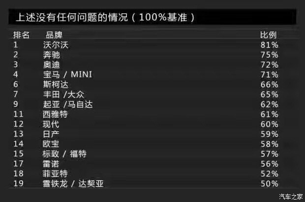 Bild都發(fā)布了一份汽車品牌品質滿意度調查報告,他們針對德國最暢銷汽車品牌top20的品質進行了調查。從調查的結果來看,可以說讓很多消費者大跌眼鏡,因為表現(xiàn)最好的品牌并不是國人熟知的奔馳、寶馬、奧迪甚至大眾,而是來自北歐瑞典的“暖男”——沃爾沃。在這份德國本土權威汽車機構以德國消費者為樣本進行的調查報告中,最后表現(xiàn)最佳的卻不是德系車,沃爾沃的表現(xiàn)有點來踢館的意思!