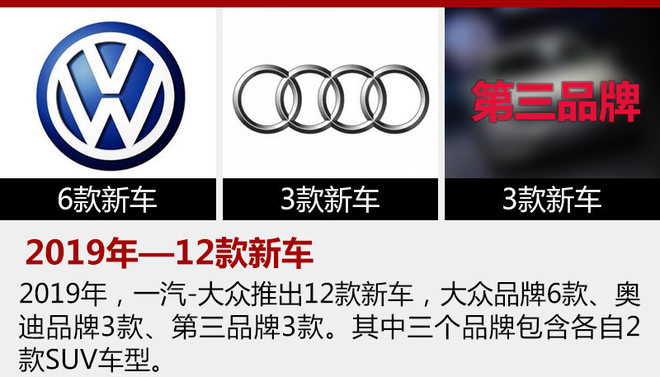 2017年進入下半年,一汽-大眾就開始籌劃2025戰略,以完成更高的銷量目標和更長遠的發展。同時,官方還表示將在兩年內推出23款新車,并包含大眾、奧迪以及第三品牌。此前,一汽-大眾汽車有限公司企業品牌資訊發言人、公關總監黃龍向網通社表示:“在未來的車型投放方面, 2018年共有11款新品投放,其中大眾品牌7款,奧迪品牌4款。”