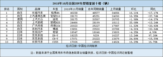 日系SUV的強勢表現則在延續,10月仍有3車攜手入榜,不過本月的“贏家”則成為了東風本田。在“機油門”陰影下低迷了數月的東風本田終于迎來曙光,10月,東風本田XR-V和CR-V攜手入榜。其中,XR-V共銷售18225輛,環比上漲12.24%,同比更是勁增97.26%,其排名也再升一名至第8名;而“機油門”的主角CR-V銷量則回升至17071輛,雖同比仍有15.59%的跌幅,但環比大漲24.80%的走勢也顯示出了其觸底快速反彈的走勢。