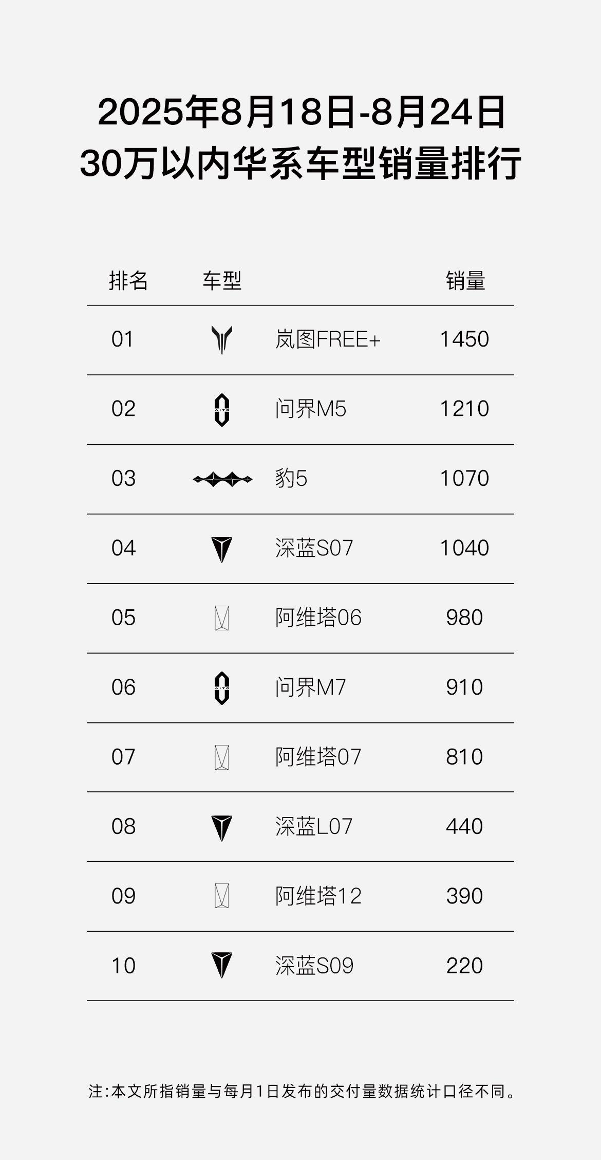 央廣網北京8月27日消息(記者姜鵬)8月第三周(8月18日-8月24日),嵐圖FREE+再創銷量佳績:單周銷量達到1450輛,再次奪得第34周“30萬內華系車型銷冠”,并強勢躋身20-30萬級混動SUV銷量 Top2。截至8月24日,嵐圖FREE+當月累計銷量已達4110輛,穩坐30萬以內華系車型銷量Top1。