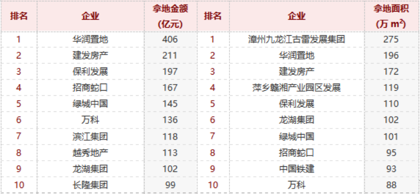 根據中指研究院發布的榜單可以看出,央國企銷售表現仍較為突出,1-5月,部分央國企銷售額增長超過50%,如中海、華潤、招商、建發、華發、中國鐵建等;還有企業增長超過100%,如越秀地產、保利置業、廈門國貿等。另外,民企銷售增長較高的有濱江、龍湖、卓越、美的置業等。在銷售額增長的同時,這些企業在土地市場依然“活躍”。