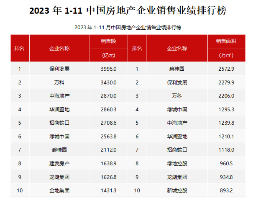 從企業表現來看,央國企銷售表現仍較為強勁。2023年1-11月,銷售額同比增長超過10%的大型企業為,中海、華潤、建發、越秀、華發、聯發、國貿地產、中建壹品、中建東孚、象嶼地產等,這些企業銷售增長較為強勁。