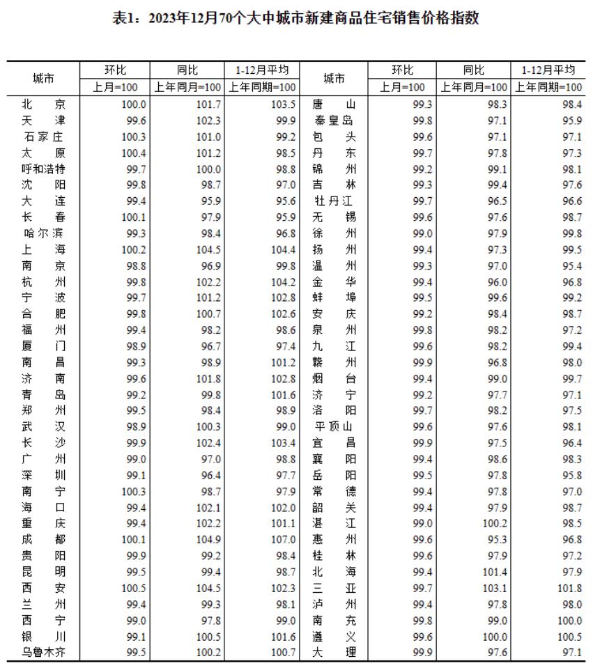 中新網1月17日電 1月17日,國家統計局公布的數據顯示,2023年12月份,70個大中城市中,各線城市商品住宅銷售價格環比下降、同比有漲有降。