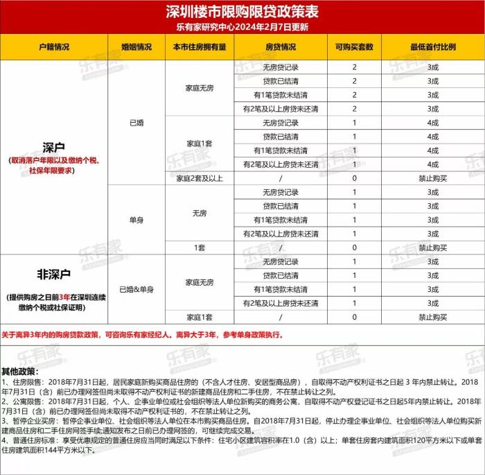 此次,深圳對戶籍居民家庭購房、非戶籍居民家庭及成年單身人士(含離異)的限購政策均有所調整。