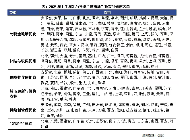 2025年上半年,中央和相關部門持續發聲釋放樓市政策利好,并落地具體舉措,涵蓋去庫存、擴需求、新模式、化風險等方面,例如專項債收購存量閑置土地、收購存量商品房,加力實施城中村改造和降低5年期以上LPR,推進“好房子”建設等。