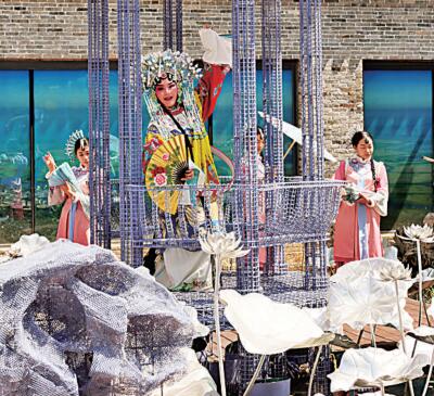 演員在位于江蘇鹽城建湖縣的淮劇小鎮表演淮劇。新華社發