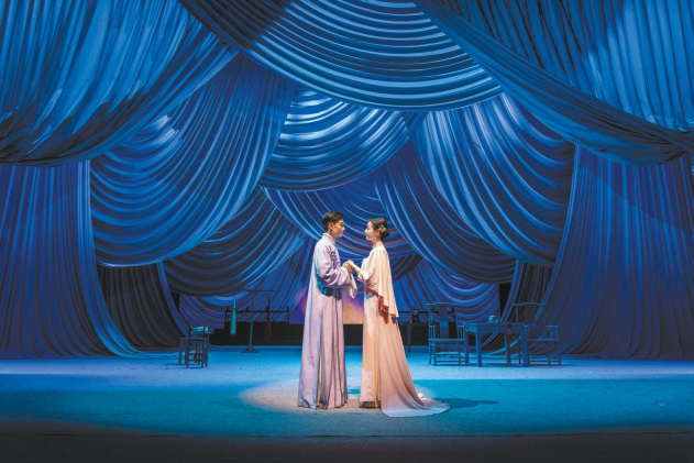 人間至深是友情 《風雪夜歸人》創作于1942年,同年,吳祖光還寫下了《記〈風雪夜歸人〉》一文,介紹劇作的創作背景和自身感悟,作為對觀眾和讀者的欣賞指導。 雖然劇中的主要情節是京劇名伶魏蓮生與官家小妾玉春的短暫情緣,但從原劇本中二人的臺詞和作者本人的解讀來看,他們的感情并不純然是一見鐘情的男歡女愛,他們的理想也不是世俗意義上的永結連理。 吳祖光在劇中和文中反復強調的一個詞是“朋友”。玉春初與蓮生交談時便說,“我們只不過見過兩三回,一共也沒說過六句話……我就覺得我們該是挺熟挺熟的朋友。”這是一個青樓出身的官家姨太太在跟一個伶人表達愛意時會說的話嗎?玉春的興奮激動除了酒勁之外,是她認蓮生這個善良的人為知己,想要親近他,點醒他,又不能太過冒犯。她的悸動不是情竇初開,而是籠里小鳥見偶然開了籠門,急欲飛出卻被腳鏈牽絆的掙扎。她當然愛蓮生,但絕不是像來后臺見蓮生的那兩位小姐似的瘋狂粉絲。她愛的,是那個人。新版的《風雪夜歸人》安排兩個只有幾分鐘戲份的女粉絲,就是要為玉春的出場做鋪墊,形成對比。 在《記〈風雪夜歸人〉》一文中,吳祖光講述了上學時與紅極一時的男旦劉盛蓮的交往,自然那就是劇中魏蓮生的原型。劉盛蓮雖是臺上名伶,臺下卻是苦人兒,結婚也好像只為父母沖喜;之后雖走紅,又不知如何而死。多年后,吳祖光仍在為婚禮上盛蓮對他說的“你多玩兒會兒再走”的話而意難平。他們有過真摯的情意,卻沒能成為長久的朋友。不僅是地位身份、世道人心,更是那個動蕩的時代扯斷了多少真摯的關系。吳祖光作《風雪夜歸人》,在個人情感表達層面,應是讓如仙的玉春以愛之名,解蓮生之困局,而圓自己與盛蓮未竟之友誼的目的。 吳祖光及母親并未因盛蓮身為伶人而輕賤他,原劇本里也并沒有蘇弘基和徐輔成對蓮生的冒犯之舉。人藝新版在蘇弘基介紹徐輔成認識蓮生時增加了一段戲:蘇弘基不讓蓮生下妝,請徐輔成近身觀看,兩人對魏蓮生的扮相品頭論足,徐輔成甚至欲伸手觸碰蓮生面頰,這確實表現出蓮生作為富人玩物的窘境。 但在原劇本中,是玉春以己之境遇點醒蓮生,如果蓮生事先已經覺察自己的不幸,那么當玉春問起“是否覺得自己可憐”,蓮生怎么會說“不覺得”呢?如果“不覺得”是違心之語,那么又如何與自覺可憐的玉春一見鐘情?總之,這一改動雖于事理可通,卻擾亂了原劇本的對話邏輯。況且初見,二人便毫不矜持地四目相對,深情款款,于人物身份關系均不適宜,亦削弱了二人關系變化的層次感。 以《牡丹亭》為背景音樂,意在渲染二人的一見鐘情,但他們的情意首先是同為可憐人的惺惺相惜。相對而言,任鳴導演對《牡丹亭》的借用顯然更為適宜。在國家大劇院版的演出中,陳祥約蓮生唱的《紅拂傳》被改為《牡丹亭》。蓮生對鏡練習,在鏡中看到玉春。而兩人訣別后,《牡丹亭》成了那無法完成的演出。他們的愛情落空了,友情卻伴隨終生。 以愛之名表達救贖之愿 吳祖光在《記〈風雪夜歸人〉》中表示,《尼姑思凡》中的幾句唱詞也許可以勉強把該劇的用意包括了。閆銳導演應當是讀過該文的,不然也不會特意修改劇本,讓兩人在蘇家相會時一起念誦:“昔日有個目蓮僧,救母親臨地獄門,借問靈山多少路,十萬八千有余零。” 這四句乍聽起來意思不甚明了,若說是愛情之艱難似不貼切,但從吳祖光的解說和玉春的一系列臺詞中,應可解之八九。吳祖光在文中寫道,“在目前世界上大多數的人都在受苦的時候,最要緊的事莫過于去與朋友同甘共苦了吧?”玉春又怎么說呢?她并不認為自己的好日子是幸福,而仍然想著自己受苦的朋友。她希望蓮生也看破浮華,認清自我。所以,不會有什么“以后這《思凡》只唱給你一人聽”的話,藝術既已淪為謀生工具,也就失去了它的高貴。玉春只希望和蓮生去尋他們的窮朋友。這是愛情嗎?一個女子愛上一個男人,竟然一心想要同他去過窮苦的日子? 當然,劇中玉春的心態首先反映了抗戰時期身處大后方的知識分子普遍存在的焦慮。同時期,宋之的的《霧重慶》也表現了大后方青年面對抗戰的復雜心態。他們關心抗戰,心系民族同胞,卻無法切實拯救大眾。《風雪夜歸人》以玉春的形象表達了一種救贖之愿與解放全人類事業的艱難。 玉春犧牲自己換取蓮生的自由,而蓮生甘愿窮困至死,也沒有將玉春留給他的金鐲變賣。二人欲掙脫的世俗不是禮教與階級,而是勇于拋棄依靠他人而獲得的虛榮。蓮生身死,他的靈魂得以永生。那金鐲讓兩個小乞丐吃上了一餐飯,也算不辜負玉春之心愿了。因此,第三幕玉春贈金和序幕兩個乞兒從死去的蓮生手上拿走金鐲,是相互呼應且富有意蘊的情節,實不應刪去。玉春與蓮生情比金堅卻不求廝守,身處繁華卻心地高貴,如此脫俗之愛實難為一般人所解。 戲曲如何為話劇所用 話劇是以對話敘演情節、塑造人物的藝術,在話劇表演中加入戲曲元素,一直是話劇民族化的實踐方向之一。尤其在戲曲演員為主要人物的話劇中,這種實踐更是順理成章。 《風雪夜歸人》劇本第一幕并沒有蓮生演戲的場面,但國家大劇院版和人藝版都安排了一場旦角做工戲。國家大劇院版用的是《樊江關》,大幕前燈光大亮,披袍策馬的薛金蓮一套英姿颯爽的動作,背景音是戲園子里觀眾的喝彩。這不僅展示了蓮生的風采、得