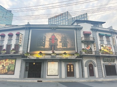 這兩天,乍浦路風(fēng)貌影視街入口處,當(dāng)年搭建“醬園”的地方又有了新變化。原先的《桃李劫》《馬路天使》的海報(bào)已撤下,掛起9米長、5米寬的《醬園弄》首發(fā)巨幅海報(bào),電影拍攝時(shí)熱鬧打卡的城市記憶一時(shí)鮮活起來。勝利電影院門口的電子屏,滾動(dòng)播放著《醬園弄》幕后花絮,為影片上映做宣傳。