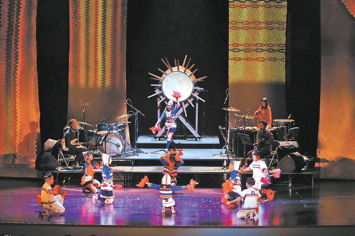 10月12日晚,一場(chǎng)將云南深山原始生命力融合跨越時(shí)空藝術(shù)想象力的演出登上北京舞臺(tái)。作為第二十八屆北京國(guó)際音樂(lè)節(jié)的重磅演出之一,由普利策音樂(lè)獎(jiǎng)得主、華人作曲家杜韻傾力創(chuàng)作,北京國(guó)際音樂(lè)節(jié)與美國(guó)林肯中心聯(lián)合委約的音樂(lè)劇場(chǎng)作品《刻在森林的海》在北京喜劇院世界首演。來(lái)自云南西雙版納的非遺項(xiàng)目基諾族大鼓舞傳承人何桂英,帶領(lǐng)8位基諾族少年,在舞臺(tái)上敲響大山里特有的聲音。