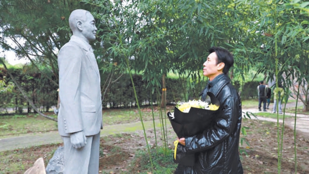 于和偉代表主創團隊向吳石烈士敬獻鮮花
