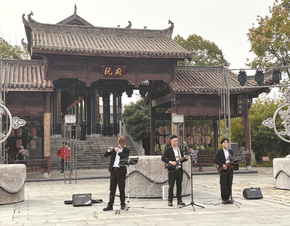 演藝新空間向外擴展,蕪湖鳩茲小鎮內,上海街藝音樂組合正在演出。文匯報記者 孫彥揚攝