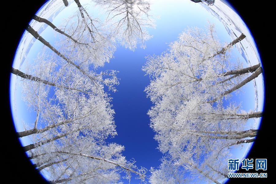 1月3日在新疆阿勒泰地區富蘊縣吐爾洪鄉拍攝的霧凇美景。藍天映襯下的冰雪世界顯得一片肅穆。 新華社發(丁寧 攝)