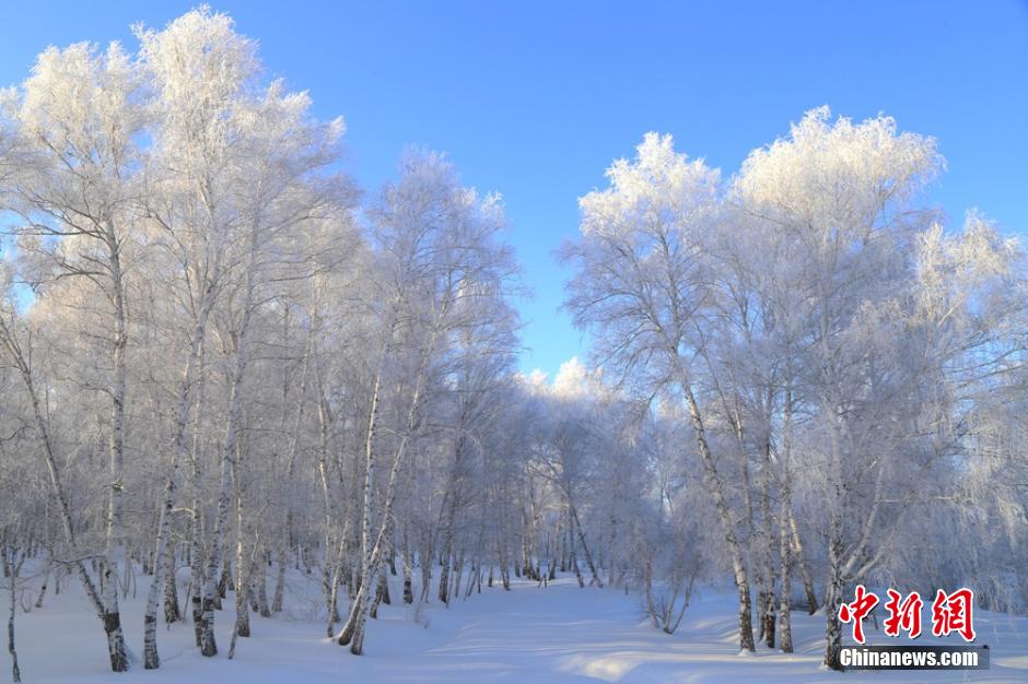 連日來,新疆阿勒泰地區遭遇十年來罕見強降雪,雪后初霽,氣溫漸降。1月4日,受超低溫天氣的影響,阿勒泰哈巴河白樺林出現大面積霜掛美景,晶瑩剔透,潔白無瑕,銀裝素裹,成為一道道美麗的風景線。 謝師民 攝