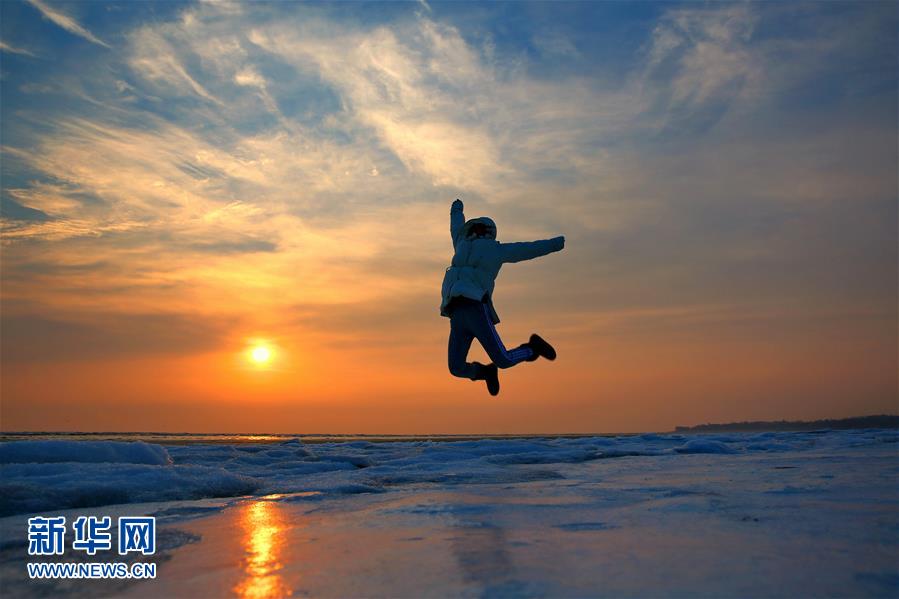 這是秦皇島市海港區海邊的冰海日出景色(1月3日攝)。進入冬季,河北省秦皇島沿海岸線出現結冰現象,呈現出“冰海奇觀”的風景。 新華社記者楊世堯攝