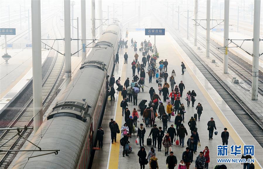 一輛動車組列車駛離石家莊火車站(1月9日攝)。 1月10日零時起,全國鐵路實行新的列車運行圖,增開旅客列車285.5對,其中增開動車組列車281.5對。運行圖調整后,全國鐵路開行旅客列車總數達到3142對,其中動車組列車1980.5對。新華社記者 牟宇 攝