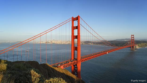 位于美國舊金山的金門大橋是世界著名的橋梁之一,也是近代橋梁工程的一項奇跡。大橋雄峙于美國加利福尼亞州長1900多米的金門海峽之上,歷時4年,利用10萬多噸鋼材,耗資達3550萬美元建成。橋長共2.7公里,橋體為橙色,跨度驚人。該橋于1937年對外開放,由工程師兼詩人約瑟夫·施特勞斯設(shè)計,其講究的懸架結(jié)構(gòu)和優(yōu)美的藝術(shù)裝飾塔令人贊嘆不已。