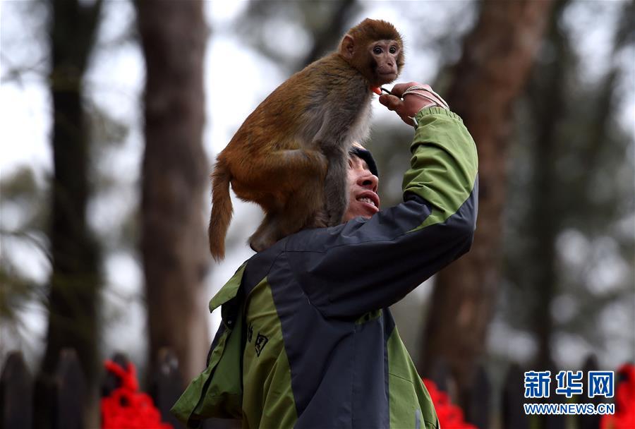 2月1日,剛出生的小猴子在馴養員手中“嬉戲”。為喜迎即將到來的農歷猴年,云南野生動物園舉行“萌猴”迎“猴年”活動,讓動物園的猴子與游客近距離接觸。 新華社記者 藺以光 攝