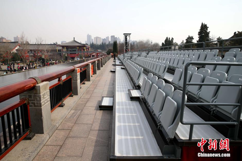 2月18日,在大雁塔音樂噴泉廣場南側高臺,臨近噴泉處皆被護欄圍起并禁止行人進入,護欄內擺放了300余個座位,費用為30元每人。據了解,大雁塔音樂噴泉自2003年建成后,免費向游客開放,每年吸引大量游人。