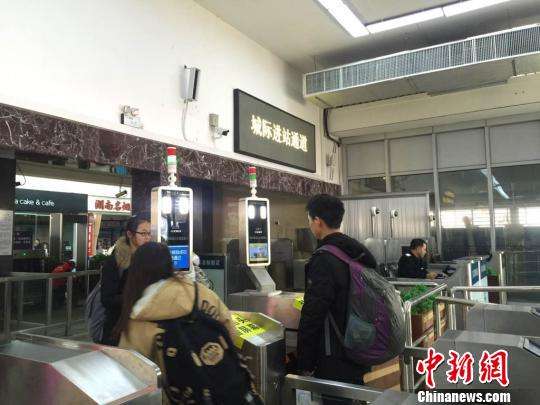 圖為長(zhǎng)沙火車站內(nèi)乘客通過“票證人自助核驗(yàn)閘機(jī)”“刷臉”進(jìn)站。(魯毅 攝)