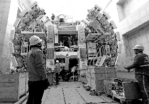 圖為昨天(9日),在京沈鐵路客運專線望京隧道施工現場,幾十名施工人員正冒著寒風對盾構機進行組裝、吊裝。