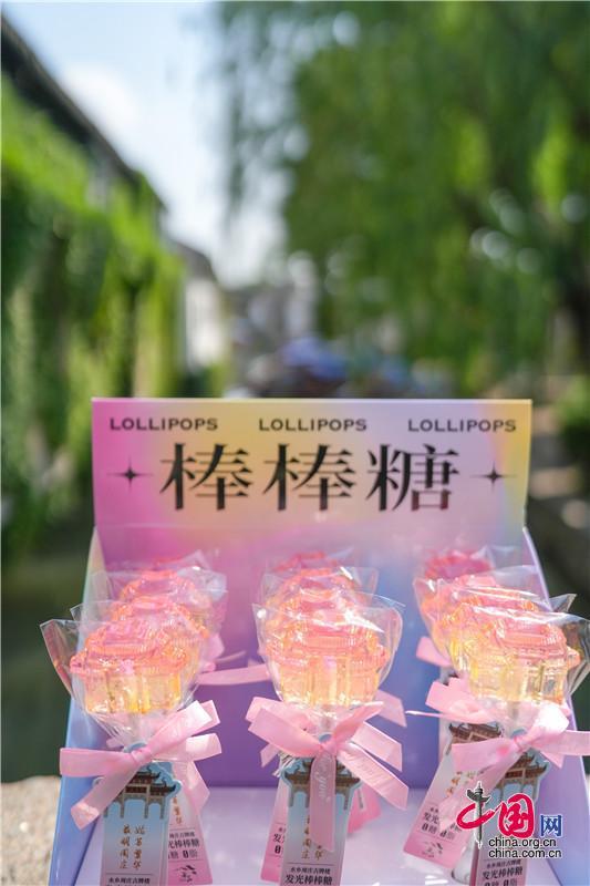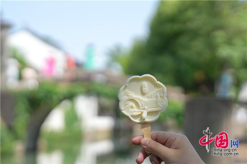 冰激凌融化的第一口,“古牌樓”棒棒糖戴著蝴蝶結突發奇想,發著光:“姑蘇繁華,最明周莊”。