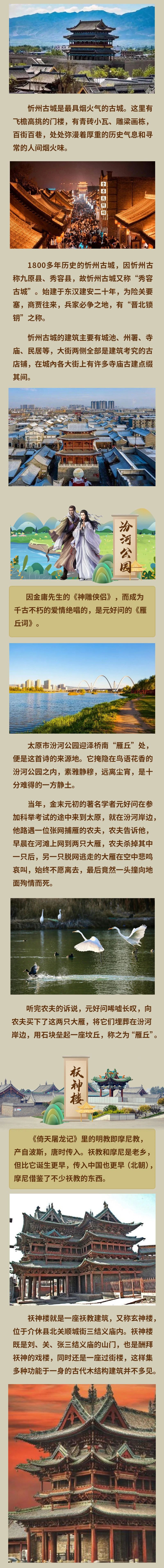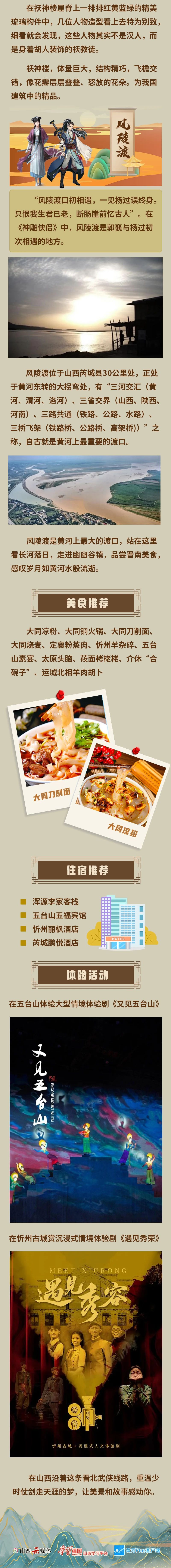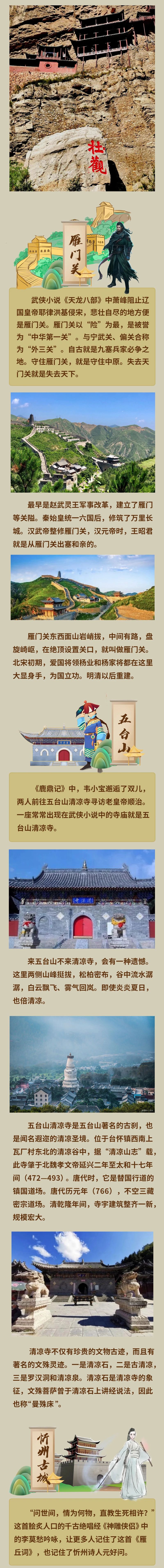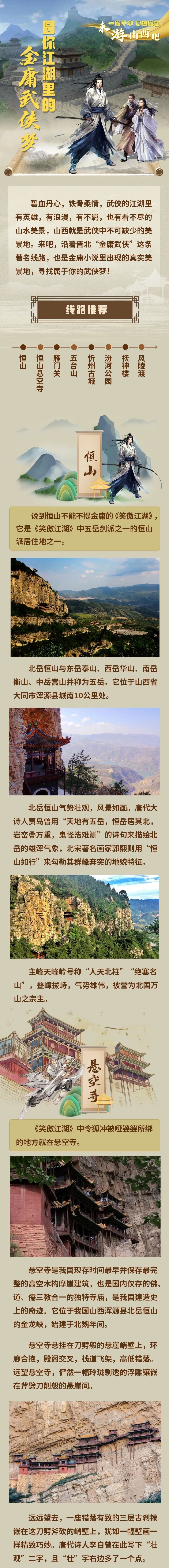2023山西國風文化月已經啟動,啟動儀式上發布的“金庸武俠線路”“詩詞名篇線路”“國家寶藏線路”三條國風文化線路備受關注。看武俠、讀詩詞、賞國寶,國風山西到底怎么玩兒?三張長圖帶你走一遍!