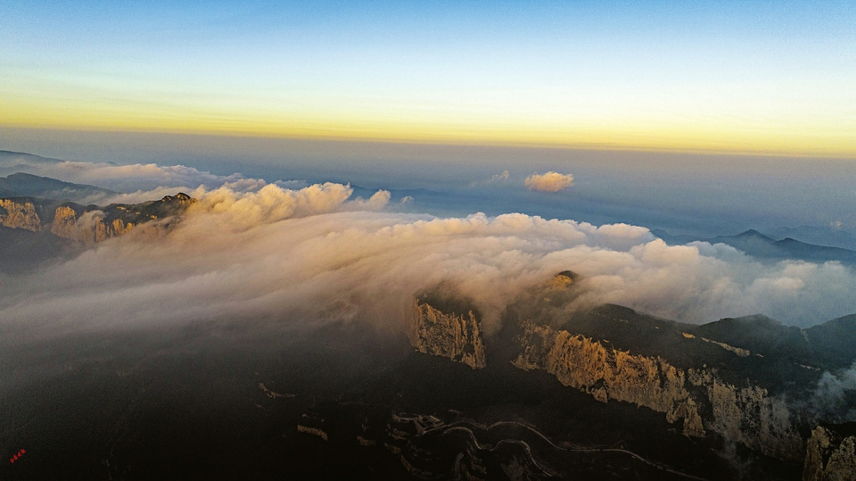 9月7日,日出時分,山西武鄉板山風景區,滾滾的云流翻山而過,四處漫溢,似流水瀑布,氣勢磅礴,宏偉壯觀。在霞光的烘托下,云霧變化出七彩的光芒,如夢似幻。據常年關注武鄉板山風光攝影的武鄉縣攝影家協會王步宏主席說,這種瀑布云很少見。