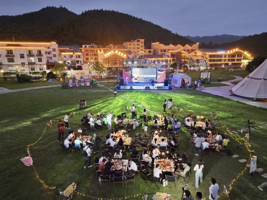 新華社南昌10月6日電(記者朱雨諾、程迪)夜幕之下,江西萍鄉(xiāng)市武功山景區(qū)的驢友帳篷大本營內(nèi)熱鬧非凡。喜愛音樂的游客在演出現(xiàn)場(chǎng)跟著歌曲旋律搖擺,也有不少游客三五成群,坐在天幕下邊看電影邊吃燒烤,享受著假期悠閑時(shí)光。