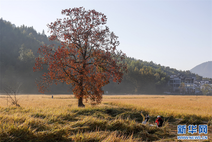 當(dāng)日,安徽省黃山市黟縣宏村、盧村等地晨霧縹緲,秋色斑斕,粉墻黛瓦掩映其中,宛如一幅幅繽紛多彩的油畫。 新華網(wǎng)發(fā)(施亞磊 攝)
