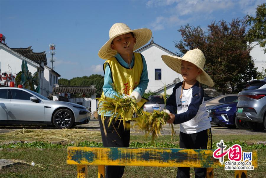 香村的管家將草帽與鐮刀發放給孩子們,再由經驗頗豐的伯伯示范,再到實操,一場歡樂的割稻子活動在田間展開。參與勞作,真切體會那句“粒粒皆辛苦”,在割稻子現場,也能感受到大人們也躍躍欲試,“這邊,這樣割,不對,不對,哎呀……我來”略顯著急的“指揮”著孩子,或許,這樣的場景也帶給家長們重回童年無憂時光的快樂。