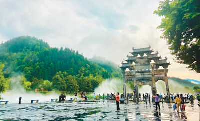 西遞景區牌樓廣場雨后美景。西遞鎮政府供圖