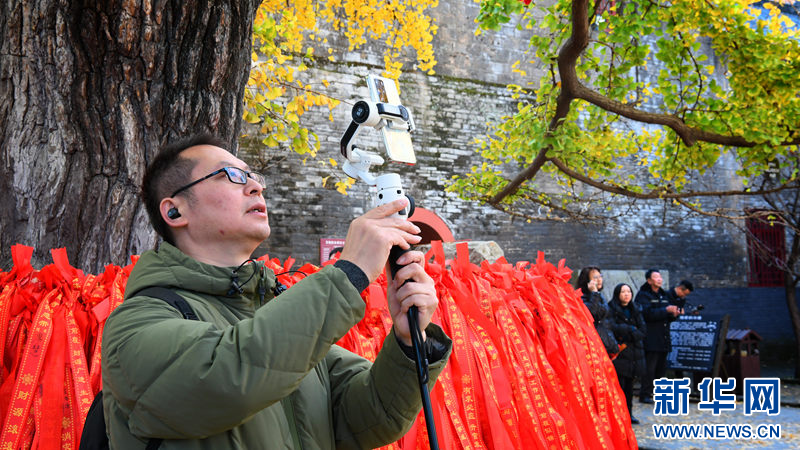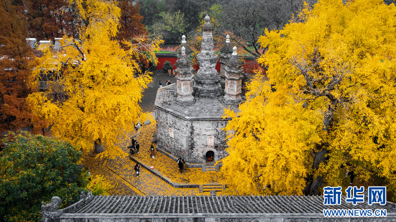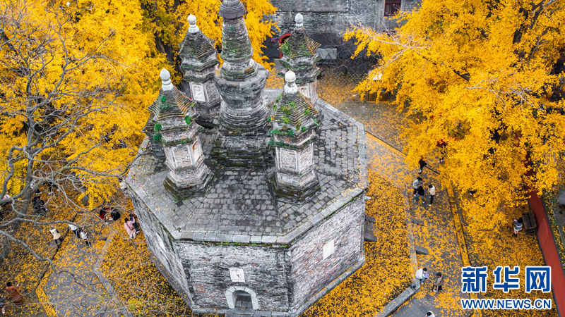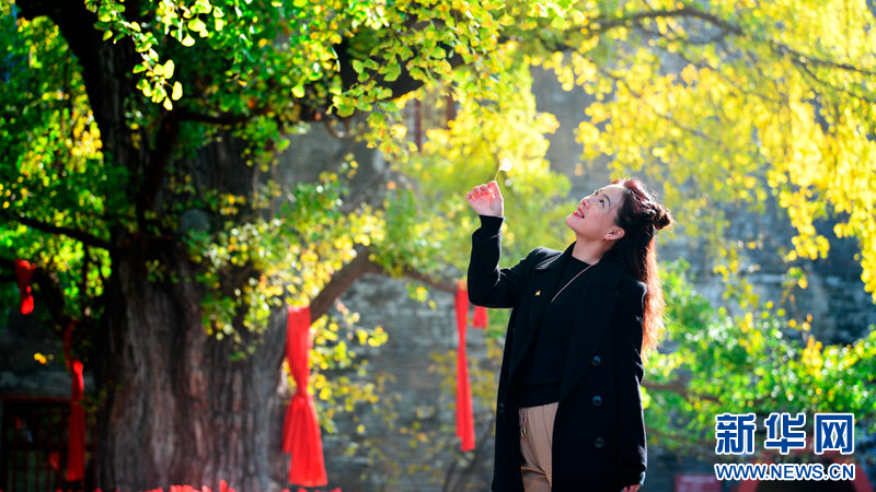 近日,佇立在湖北襄陽廣德寺內的銀杏古樹迎來最佳觀賞期,吸引了眾多游客前來拍照打卡。 楊瀟攝 新華網發?