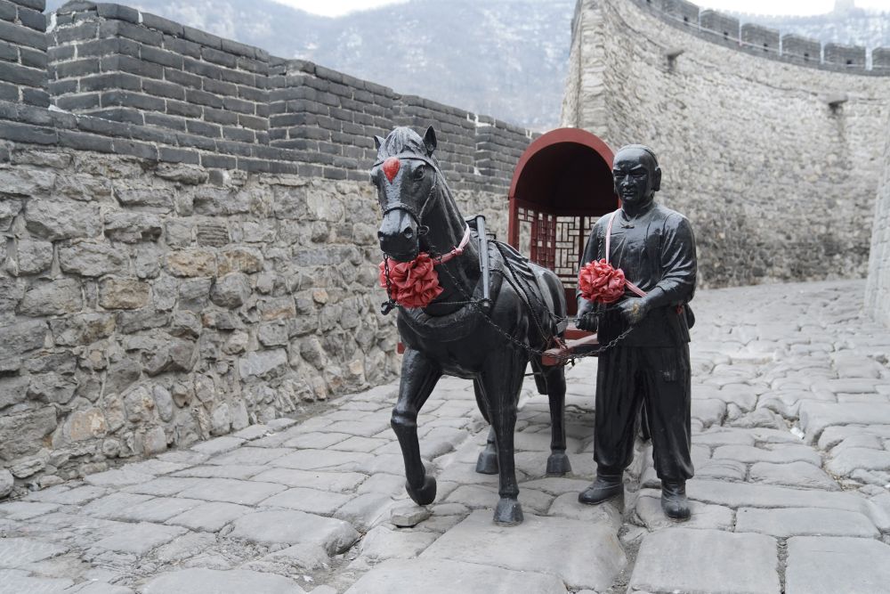 固關(guān)長(zhǎng)城的甕城內(nèi),大約30厘米深的車(chē)轍印從城門(mén)洞下穿過(guò),深深地鑲嵌在石板路里。游客們徜徉于井陘古道,不禁紛紛感嘆時(shí)光流逝。