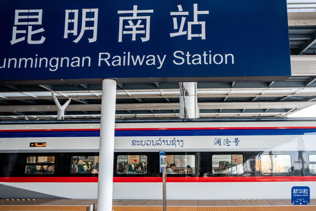 2月14日,中老鐵路國際旅客列車從昆明南站發車。