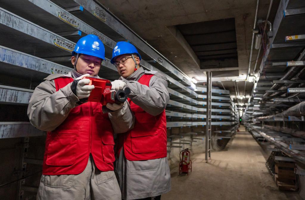 電力工作人員在崇禮冬奧核心區(qū)地下管廊巡查 “我們配備人員到現(xiàn)場值守,確保張家口崇禮奧林匹克公園及張家口冬奧村區(qū)域的燈光秀和相關(guān)文娛演出活動(dòng)有穩(wěn)定供電。平時(shí)這里是不需要人員值守的,因?yàn)榕鋫溆幸惶淄晟频淖詣?dòng)化保障體系。”太子城供電所所長姚遠(yuǎn)說。