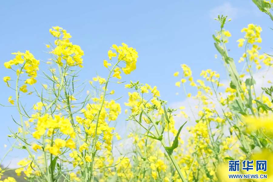 金黃的油菜花盛開如海,花田內一片金黃璀璨。新華網發