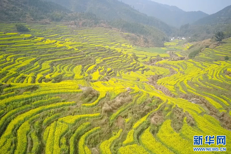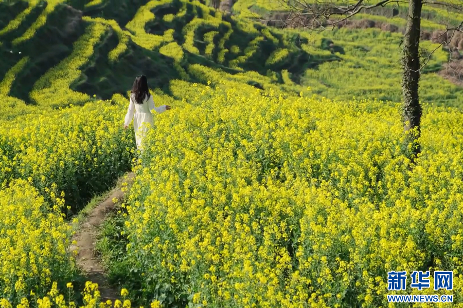 春暖花開,江西上饒篁嶺古村的油菜花進入觀賞期。新華網 唐子蘭 攝